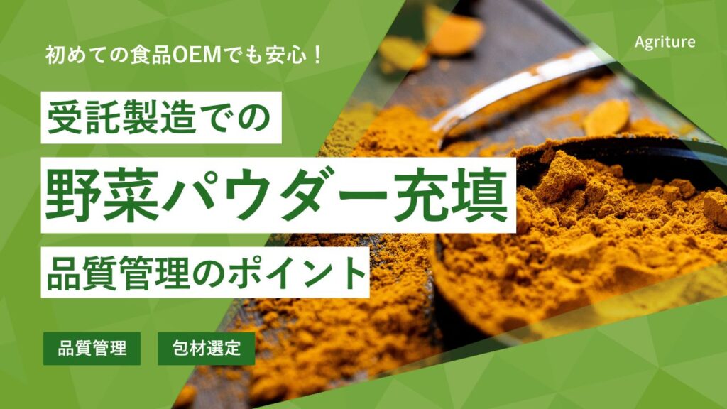 野菜パウダーの充填を受託製造で行いたいと考えている方にとって、品質管理とパッケージ選定は成功の鍵を握る重要な要素です。 近年、健康志向の高まりとともに野菜パウダーの需要が急増しています。しかし、製造設備への初期投資は大きな負担となるため、... -