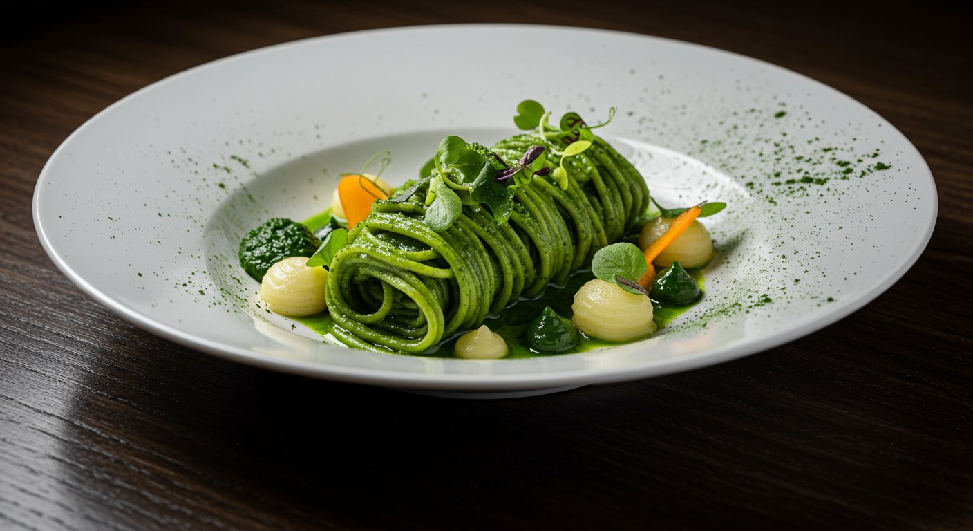 野菜パウダーを使ったレストランの創作料理