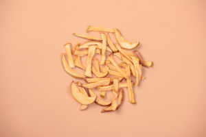 京都府の契約農家で育てた白ねぎを、白い部分と青い部分をバランスよくミックスしてスライス。低温でじっくり乾燥させることで、とろけるような甘さの中に、ツンと香るねぎ特有の辛みがしっかり残る仕上がりになっています。加熱調理に加えると甘みがいっそう引き立ち、戻した際の歯ざわりは、生のねぎよりも軽快で食欲をそそります。乾燥によって傷みやすい青い部分も長期保存が可能となり、香味野菜ならではの風味を一年中安定して提供できます。