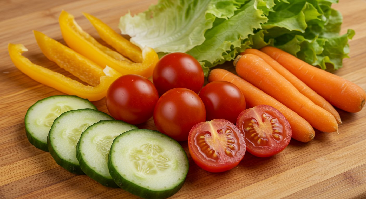 トマト、ミニトマト、きゅうり、レタスといった野菜は「洗う」「切る」「ちぎる」だけで食べられます。忙しい朝や帰宅後の疲れた時間帯でも、これなら手間をかけずに野菜を摂取できます。